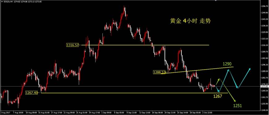 4小时走势(黄金):