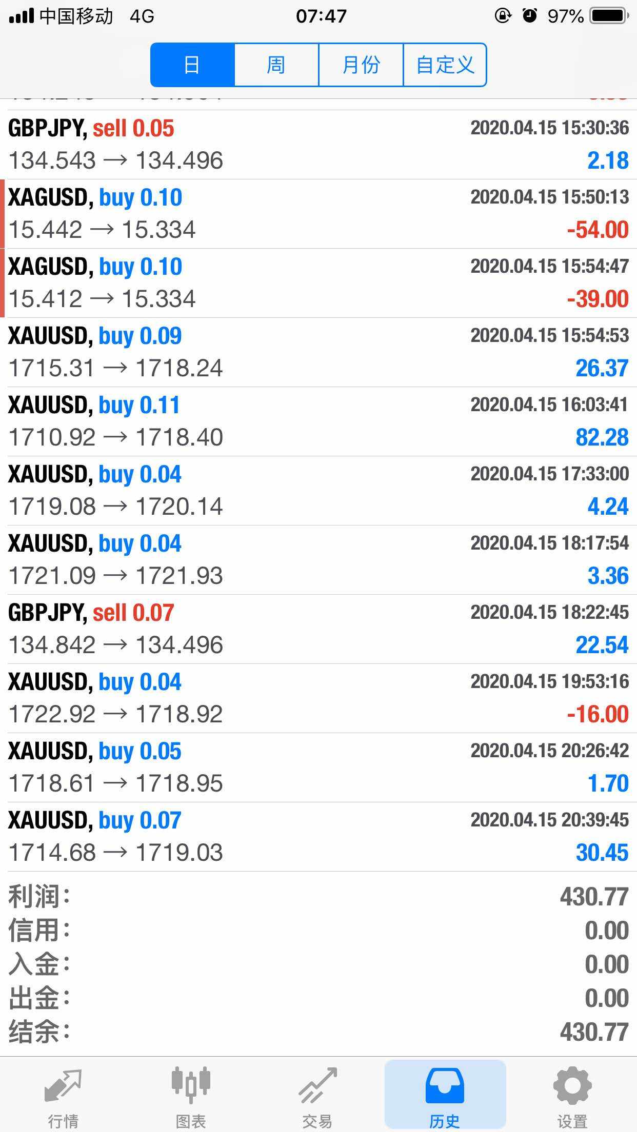 昨天盈利601,主要贡献是黄金的振荡上行,虽然回调到了1690附近,但是仍会回到4小时均线之上,所以近期仍是坚持看多,谨慎做空。镑日由于担心反弹有限,所以干预了EA提前微利出场,结果半夜继续反弹,少盈利近100元,安全与收益我还是比较看重前者。