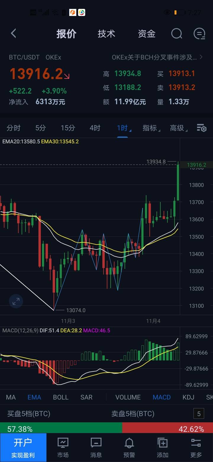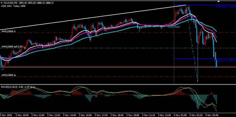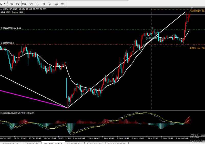 今天时值美国大选结果公布,黄金波动剧烈,但是也符合中枢突破 ,1分钟图猛烈一笔下去,然后回拉,不出新高,更加确认好前一个1小时图上涨中枢背驰终结。