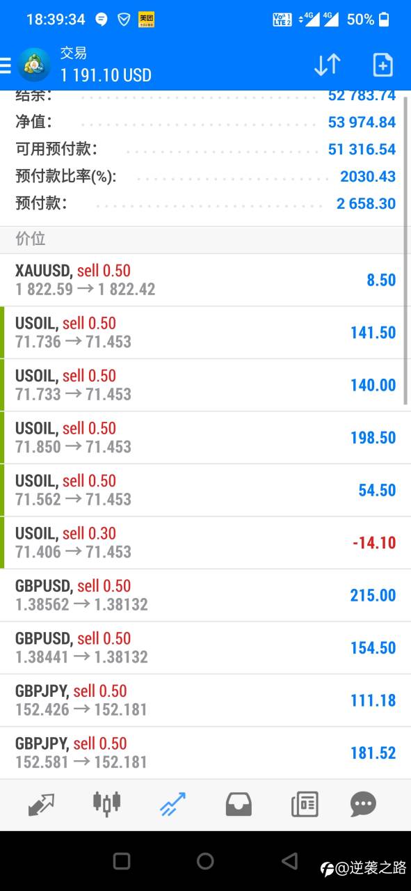 跟过 @外汇民工 ,确实有两把刷子,不过行情没有好好配合大佬的思路,最后大佬亏损一阵后清仓离场,是盈利离场,我跟随大佬亏损1561刀。