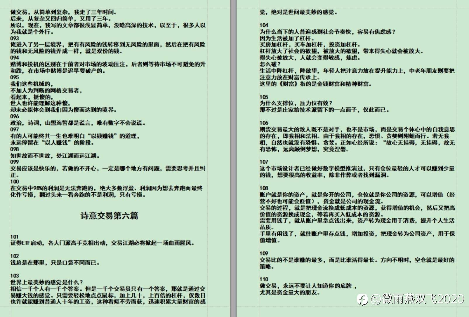 以上交易语录摘抄于1891俱乐部张生之诗意交易,共有200条,如果可以的话,后面陆续发出来。