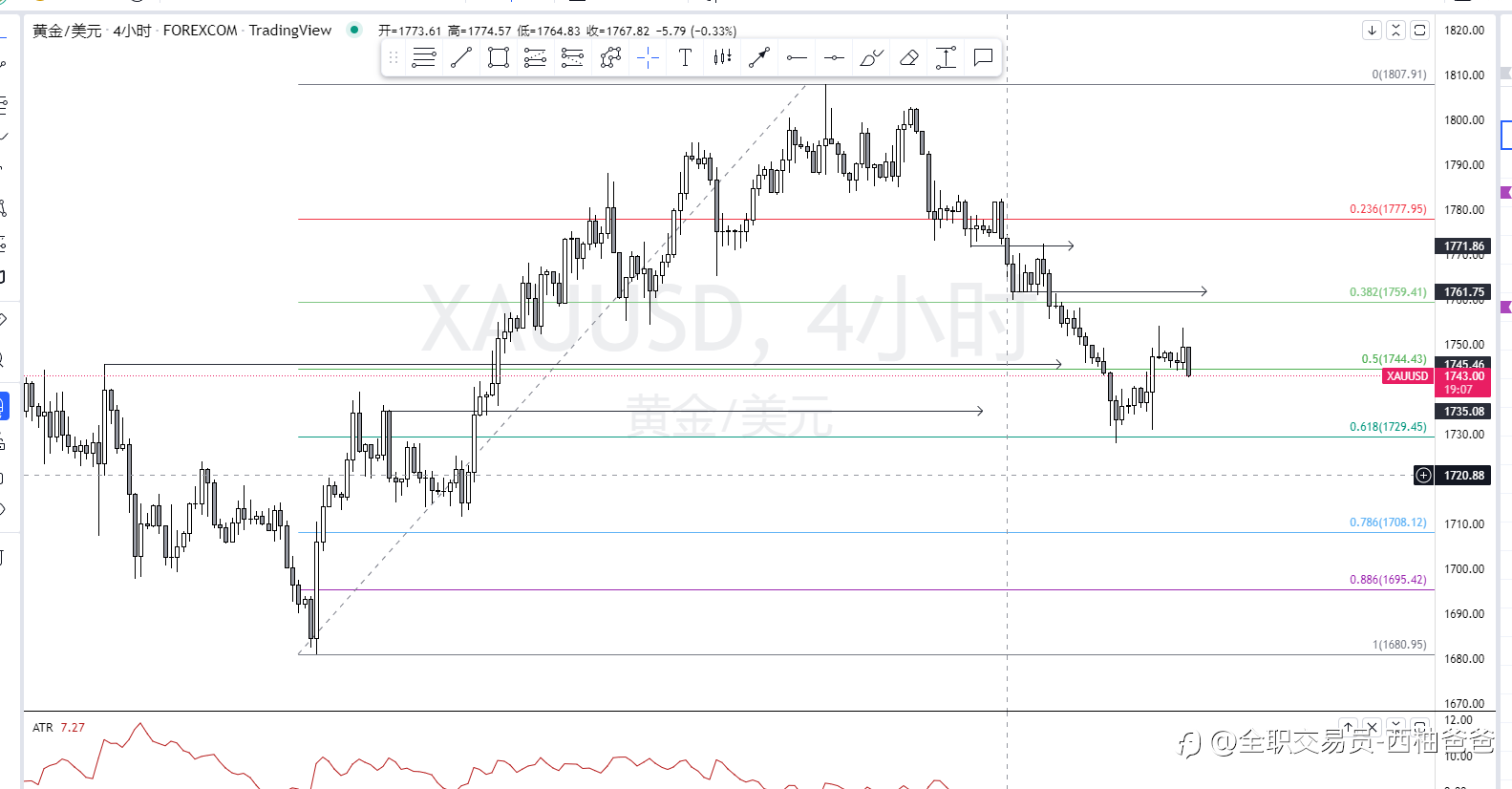 附上一个15分钟的走势,大致是如此理解的。