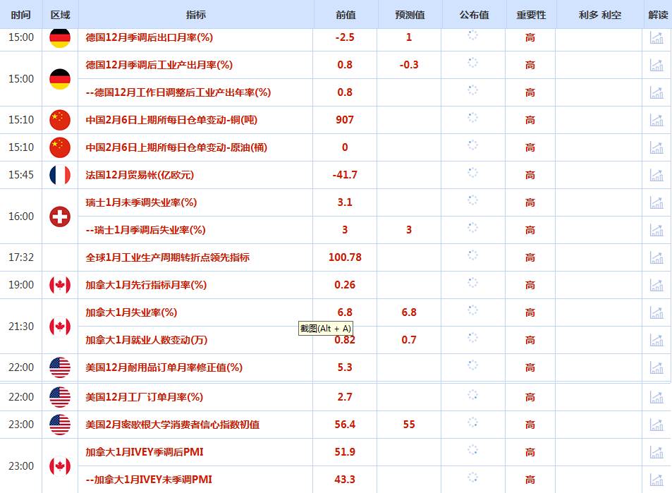 财经日历: