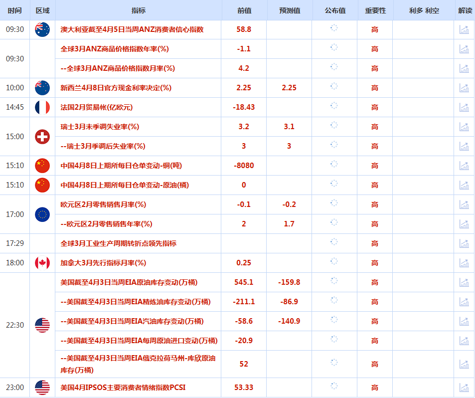 前日公布数据与消息: