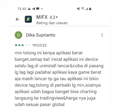 Seseorang memberikan rating bintang 1 dan ulasa pada google review broker Cyber Futures dengan menyatakan jangan percaya pada rating karena staff broker Cyber Futures menggunakan akun spam untuk rating mereka. Dia menghimbau daripada uang kalian lenyap dan senyap trading disaham jadi mendingan abaikan saja.