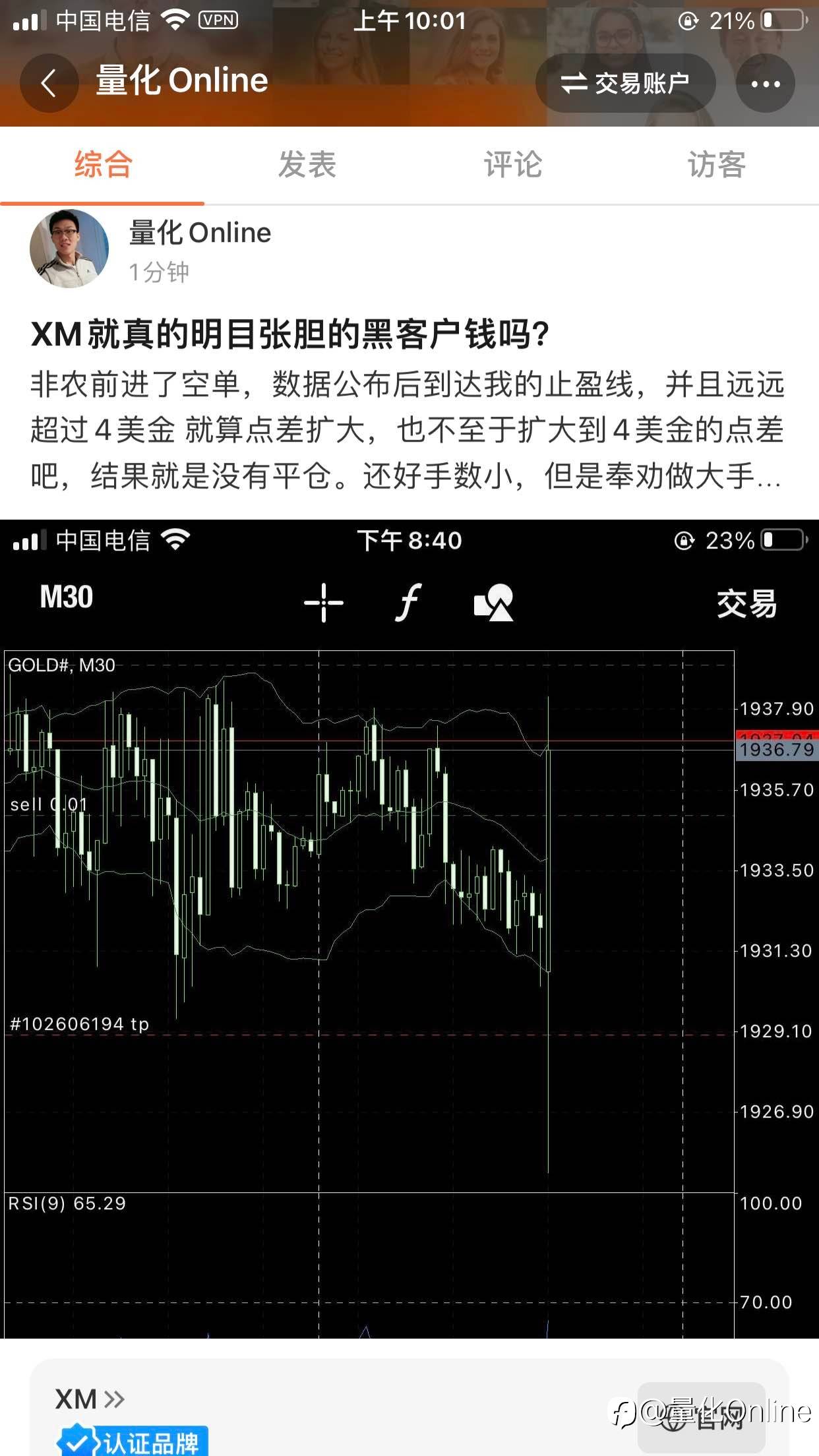 非农前进了空单,数据公布后到达我的止盈线,并且远远超过4美金 就算点差扩大,也不至于扩大到4美金的点差吧,结果就是没有平仓。还好手数小,但是奉劝做大手数的人,远离XM平台。下面是我当时截图,留着纪念一下XM是如何搞小动作的。