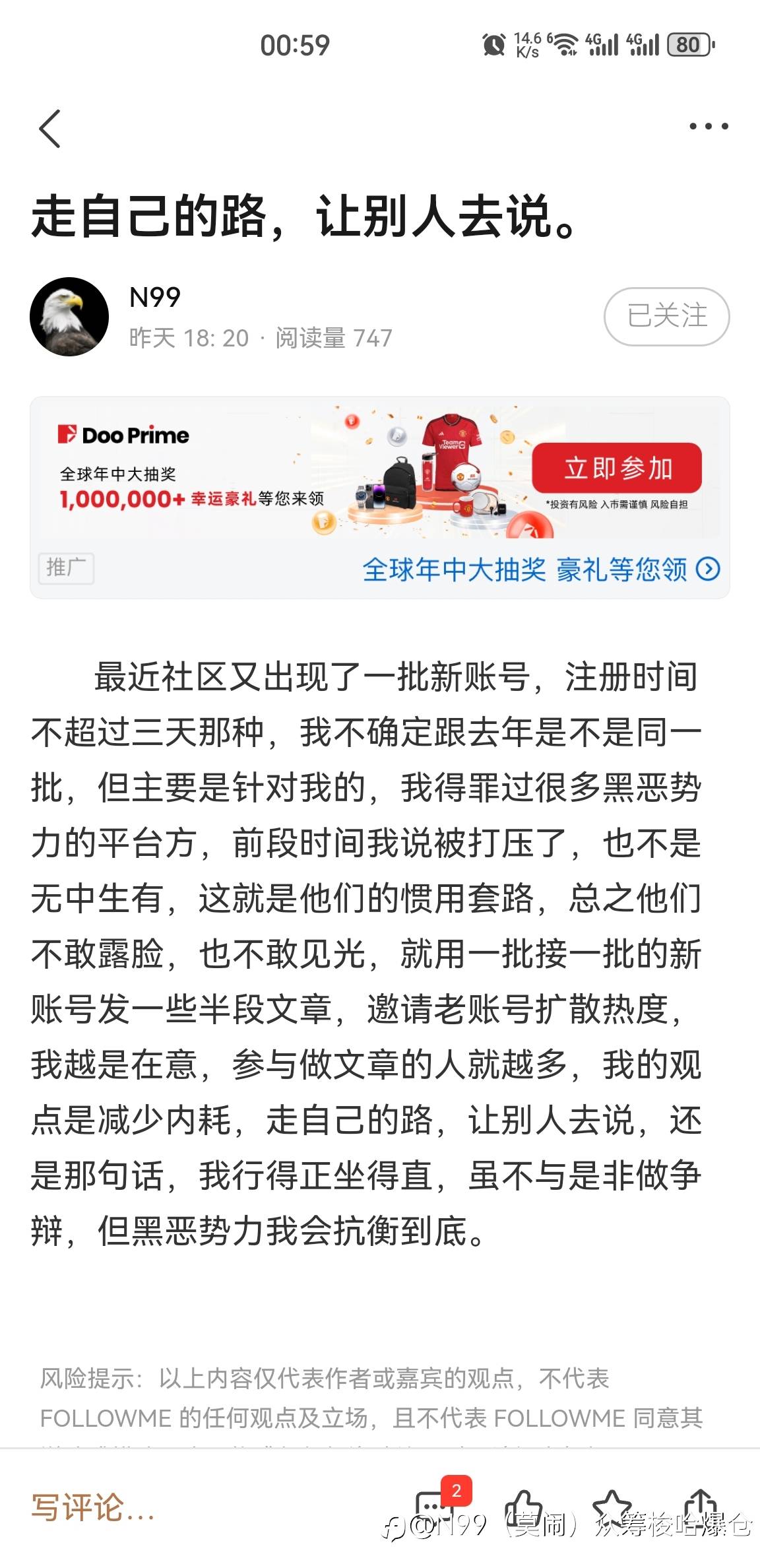 18年莫闹(N99)在Exness返佣QQ群每天发盈利的截图,后来在群里发起了一个众筹,把大家拉到一个小群里,每个群友交100-200-300美金给他,他合成一个大账户,我那时候正在读大三,付了100美金的伙食费钱微信转给他,周四的时候大家都凑齐了给他,周五是非农,他在群里说这周非农波动大,风险太大,下周在操作,结果周五还是偷偷忍不住操作了直接梭哈导致把大家的钱亏完了,账户爆仓,马上就消失了,跑路了,QQ微信一直不回话,也没一个交代,一句道歉抱歉也没有,希望大家能提高警惕。 找了他6年时间了,从来不敢正面回应我。这几年我一直关注着他,看到他动态里也做了挺多公益的事情,火灾和疫情帮助了挺多人,这一面值得大家学习!另一面,在交易层面上,不知道现在的情况怎么样,我不能随意评论,以上的事情都是18年的他的事情,我是受害者之一。 希望大家能提高警惕,网络上充满了很多的套路和骗局,大家都不认识,捂住自己的口袋,千万别随便乱投资,不要轻易相信他人的话。 共勉!