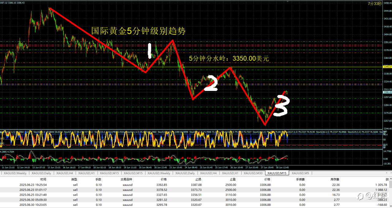 从主观思维上来看:红茶认为国际黄金震荡下行的概率较大。