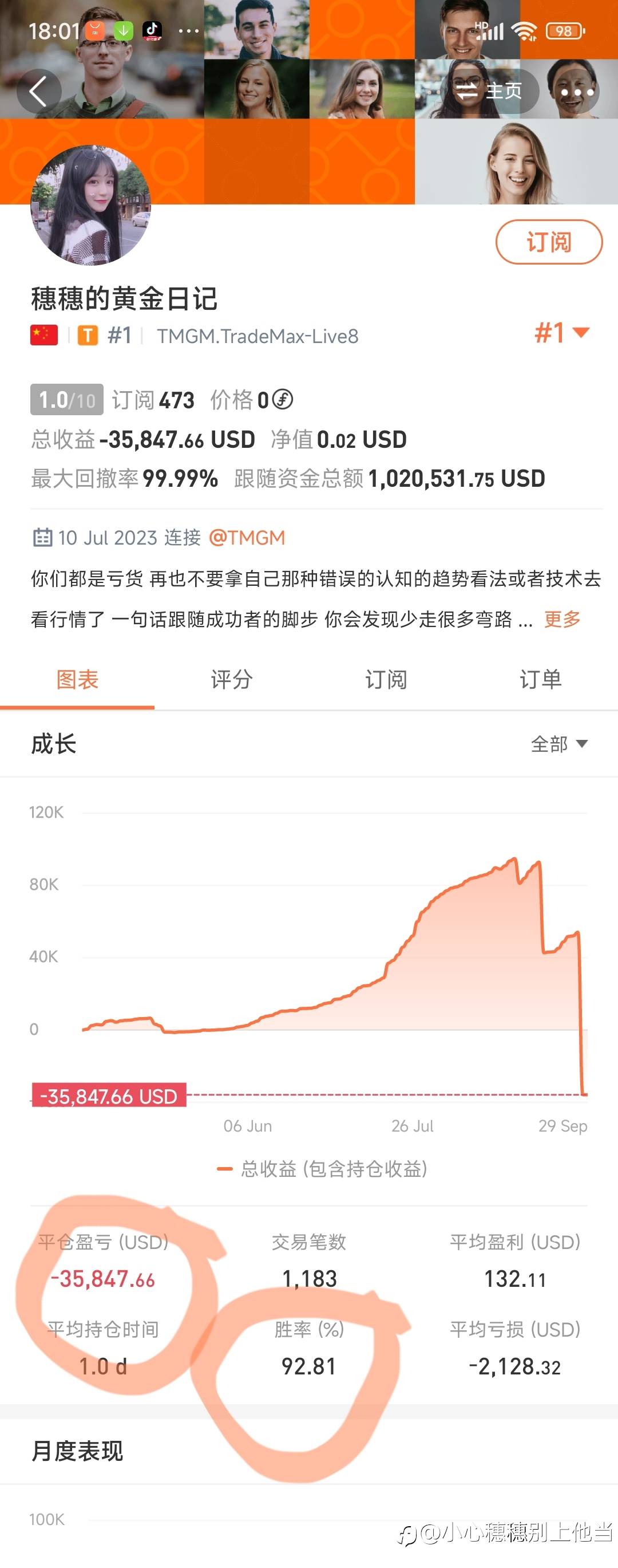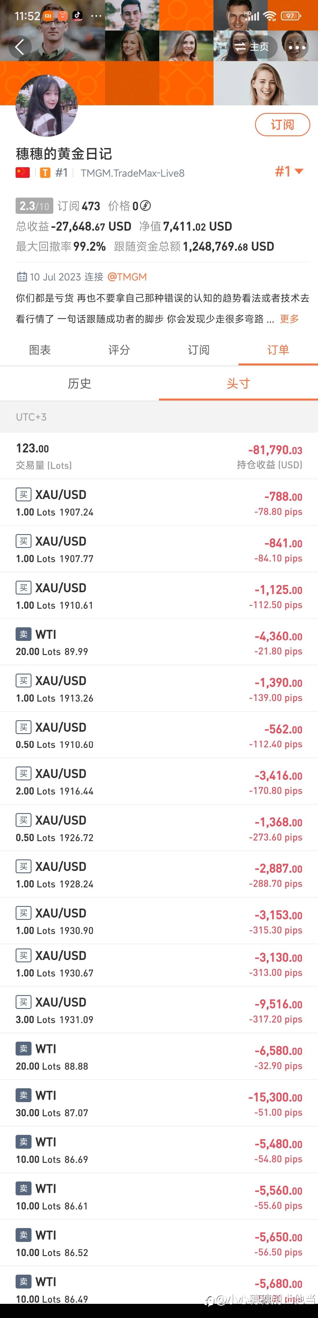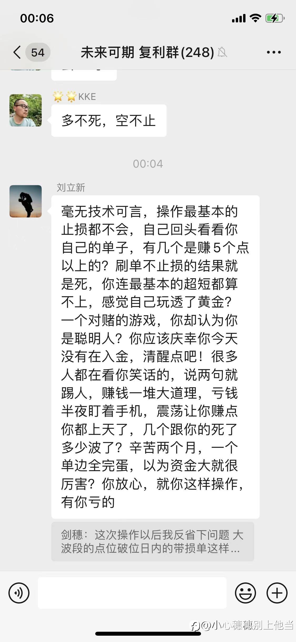 穗穗的黄金日记,小号叫此花绮谭,在自己内部v群大放厥词,说黄金要涨到1975,而且订阅他账户的跟他开多死抗,爆了不计其数的韭菜,看看他内部群怎么骂他的!