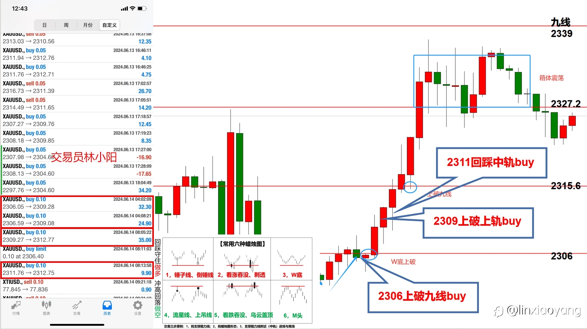 【隔夜复盘】:周二国际资本市场(1)美联储理事鲍曼发表“鹰派”言论,表示通胀依然很高,应在“一段时间”内继续维持政策利率不变,打压投资者降息预期,美元走强,黄金冲高回落(2)美国消费者信心数据疲软加之美国夏季出行平淡开场,引发对原油需求担忧,周二国际油价自81上方回落。——实战操作:受以上因素影响,以黄金为例(1)阶段1,继续利用箱体区间2322-2333采用高抛低吸操作(2)阶段2,晚盘下破箱体区间2322后顺势做空;