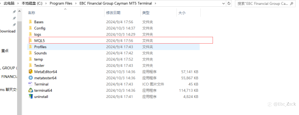 我的文件位置是如图这个,接下来选择文件夹,不要选择放EA的Experts文件夹和指标的Indicators文件夹,直接选择MQL4/5即可。