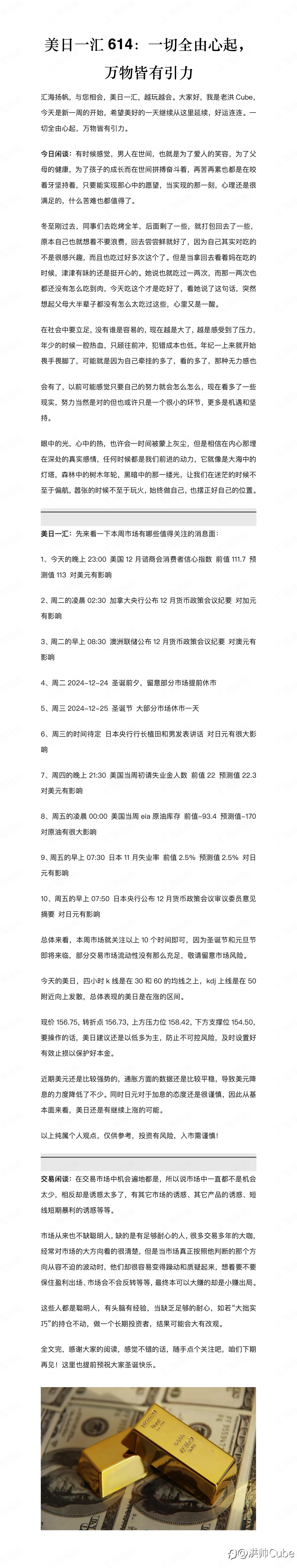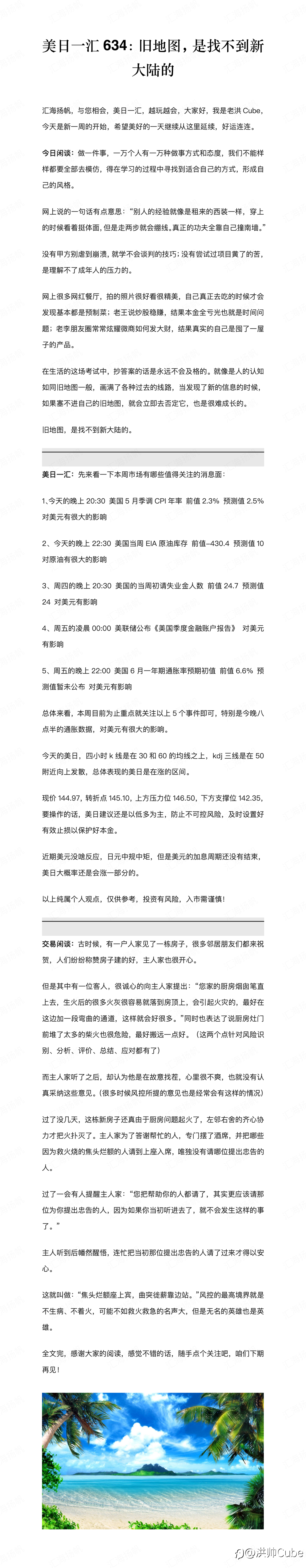 汇海扬帆,与您相会,美日一汇,越玩越会。大家好,我是老洪Cube,今天是新一周的开始,希望美好的一天继续从这里延续,好运连连。万千思绪涌心头,唯有行动方解愁。