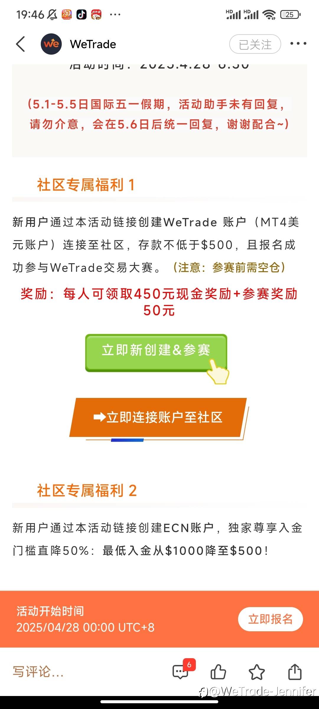 仅需500美金就可参与WeTrade实盘交易大赛,赢$100000现金大奖,预报名还能领法国进口定制红酒1瓶,免费包邮到家
