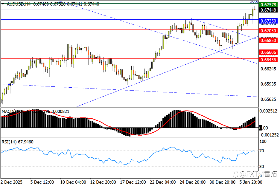 另外,技术分析面切入1小时级别观察美元指数维持多方排列上涨,目前美元高点涨多震荡,短线上有望拉回修正一段,建议投资人偏空看法为主。