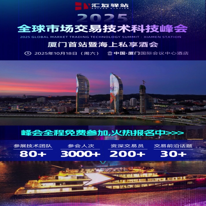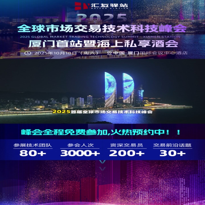 本次峰会将于2025年10月18日在福建省厦门市思明区环岛东路1697号厦门国际会议中心酒店盛大举办。峰会以“技术破界・交易无疆”为主题,预计吸引超3000名全球金融机构代表、顶尖交易员、量化投资者、行业领袖和交易爱好者齐聚,规模堪称汇友驿站往期活动之最。活动采用“峰会论坛+游轮私享酒会”的创新形式,白天聚焦专业干货分享,傍晚开启高端社交盛宴,打造交易科技领域的顶级交流平台。同时也在此感谢Followme平台对本次活动的大力支持!