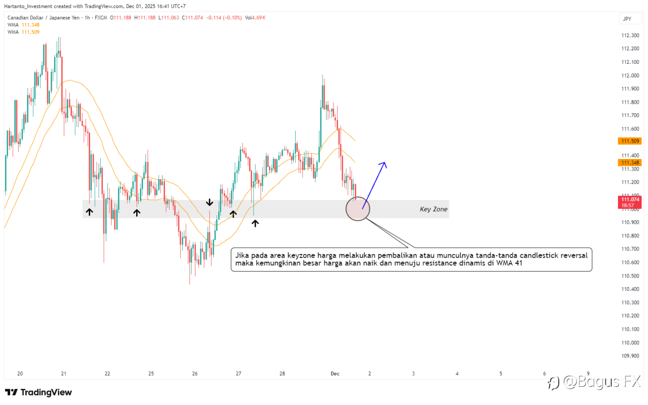 Area ini berfungsi sebagai zona pantulan potensial jika koreksi terjadi. Reaksi harga di zona ini akan menentukan apakah buyer masih mampu mempertahankan momentum bullish jangka menengah.