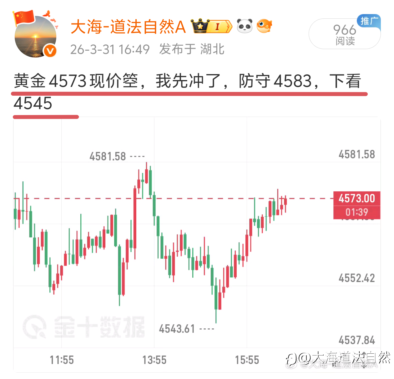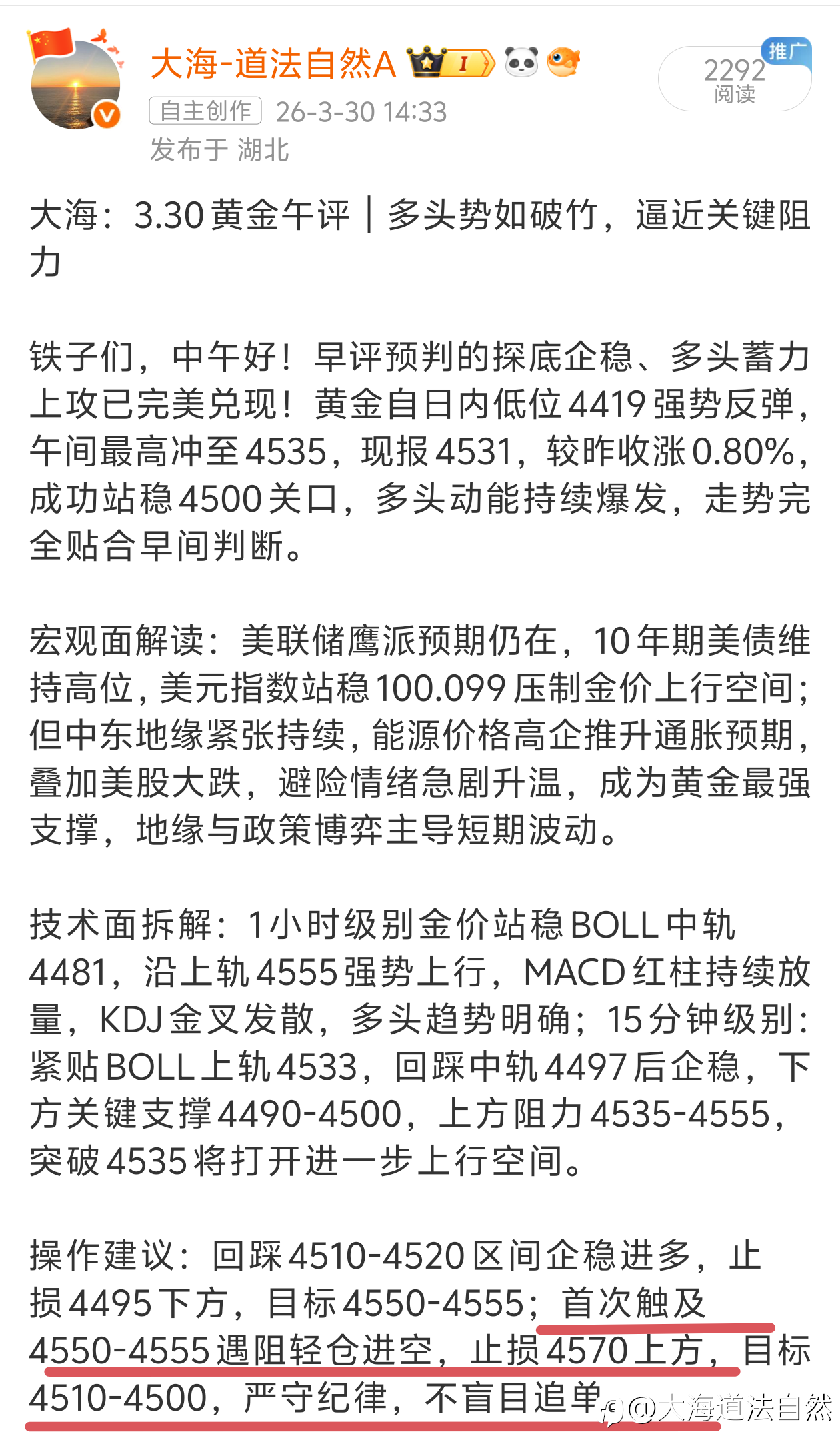 大海道法自然:黄金晚评 | 4308支撑企稳后震荡修复,均线黏合待方向选择