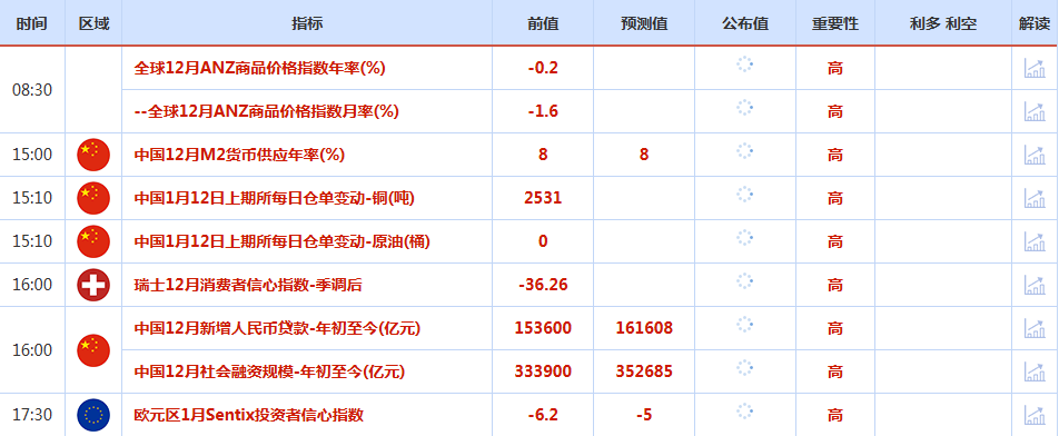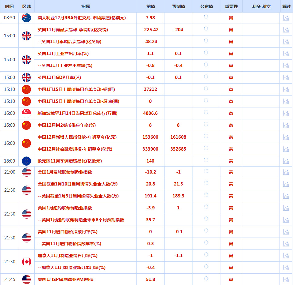 前日公布数据与消息: