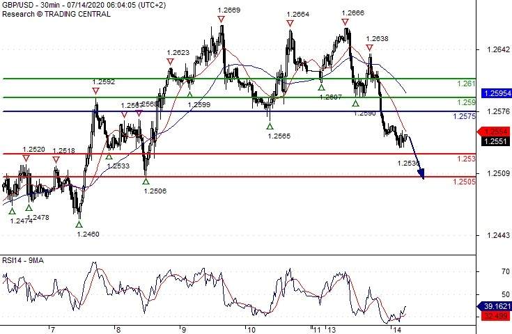 A break below 1.2530 would trigger a drop towards 1.2505.