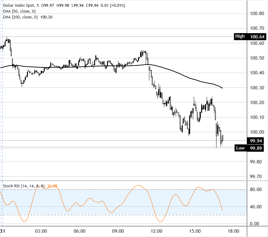 The US dollar is edging lower post Fed Powell's comments and as investors look ahead to more Fed members hitting the airwaves. Furthermore, John Williams, an influential Fed member, said that more progress is needed before they start to taper, adding to the softer tone surrounding the greenback.