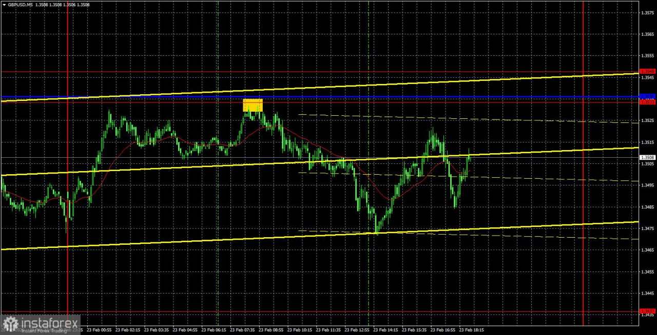 Pada time frame 5 menit, trading dapat dilakukan di sekitar level berikut: 1,3102–1,3107, 1,3203–1,3211, 1,3259, 1,3329–1,3331, 1,3413–1,3421, 1,3466–1,3475, 1,3529–1,3543, 1,3574–1,3590, 1,3643–1,3652, 1,3682, 1,3763. Pada hari Selasa, Inggris dan AS akan merilis data PMI jasa dan manufaktur, dan Jerome Powell akan berpidato pada malam hari. Powell kemungkinan tidak akan memberikan informasi baru setelah pertemuan Fed, dan rilis PMI mungkin hanya memicu reaksi jika hasilnya berbeda secara signifikan dibanding ekspektasi.