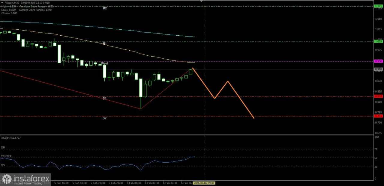 Hari ini, ada upaya untuk bergerak ke bawah. Konsolidasi harga di bawah garis MACD (sekali lagi) akan membuka target dukungan di 1,3364. Garis sinyal dari oscilator Marlin berbalik ke bawah dari garis netral nol. Kemungkinan pembalikan harga yang baru telah meningkat.