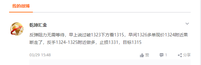 早间现价1326-1327附近进多,止损1321 目标1332-1335