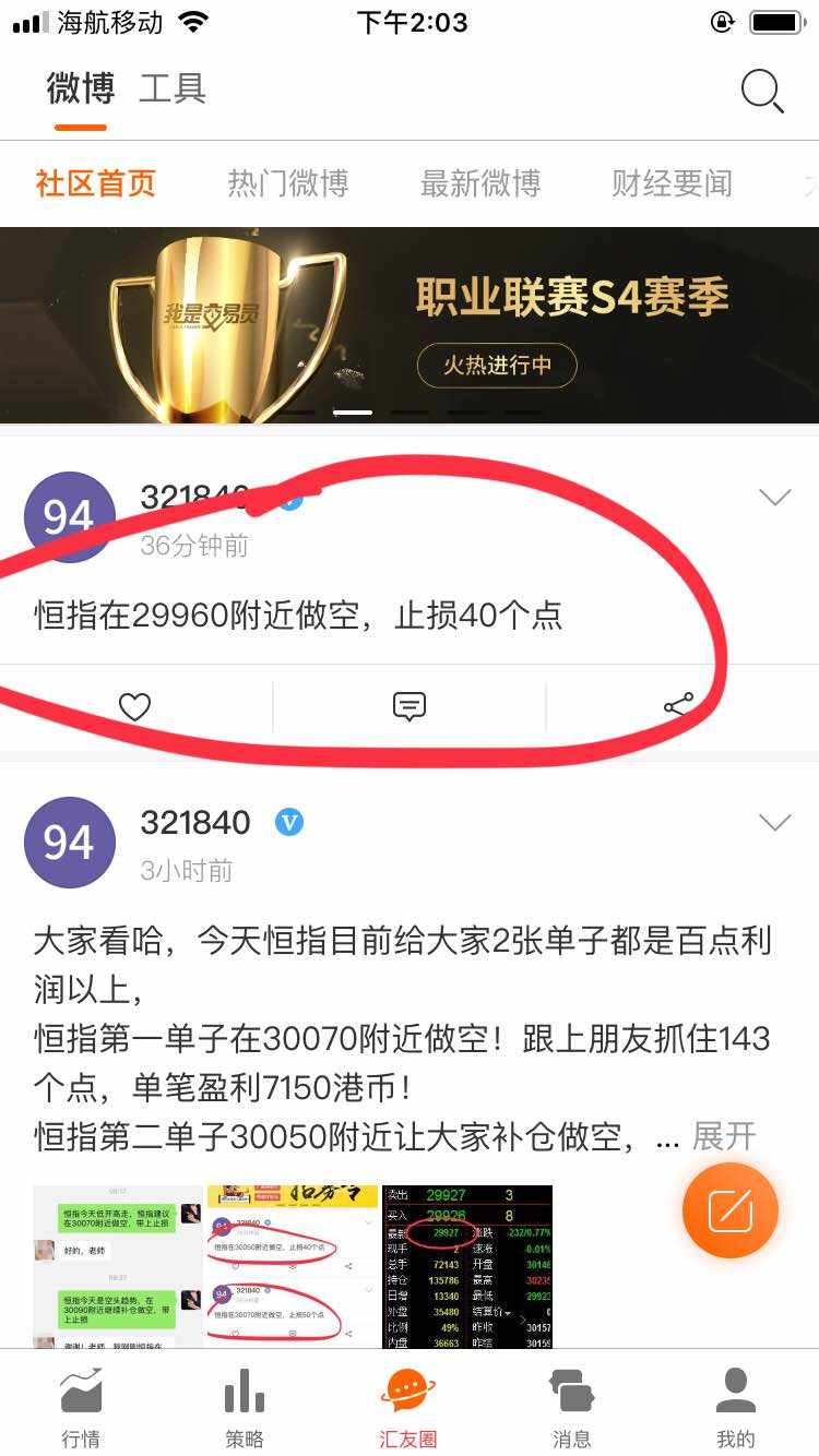 亲们,恒指前面29960的空单,获利46个点,一手利润2300港币!我给的建议都是比较稳健的,想长期稳健获利的亲们,可以多多关注我!