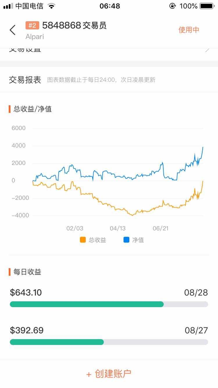 从填补系统策略的漏洞用了2万美金左右测试,从5月初开始总算完善,开始连续交易日盈利,对止损,目标,进场,都清晰了,无论是震荡还是单边都能完美驾驭。甚喜