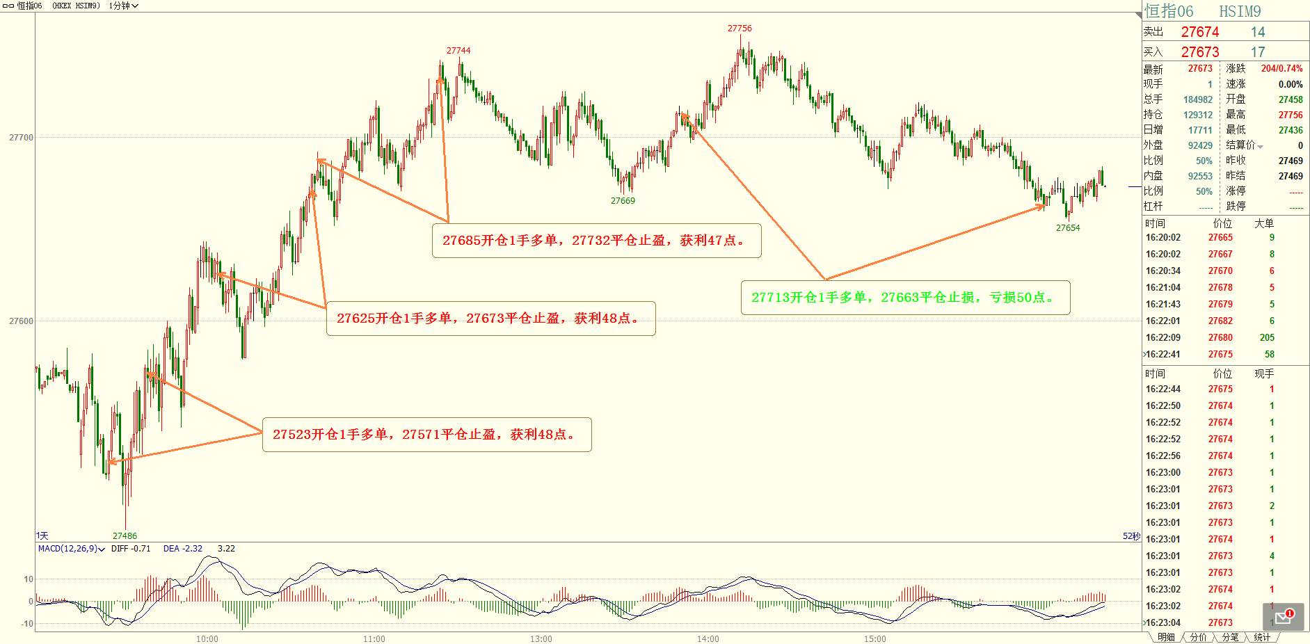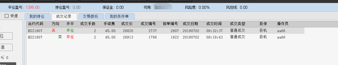 共操作4手恒指,1手原油,
