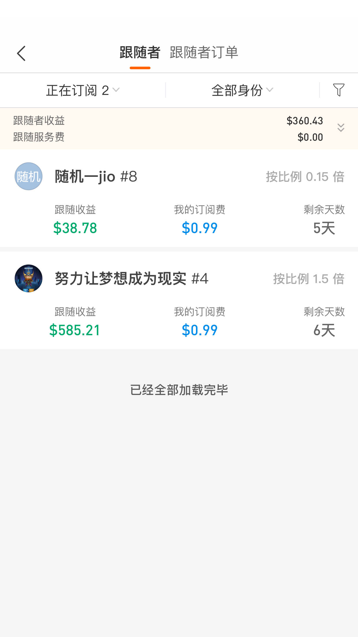 仅仅订阅了一天,跟随者就获取600块收益,而我也获得了2个9毛9的订阅费哈哈