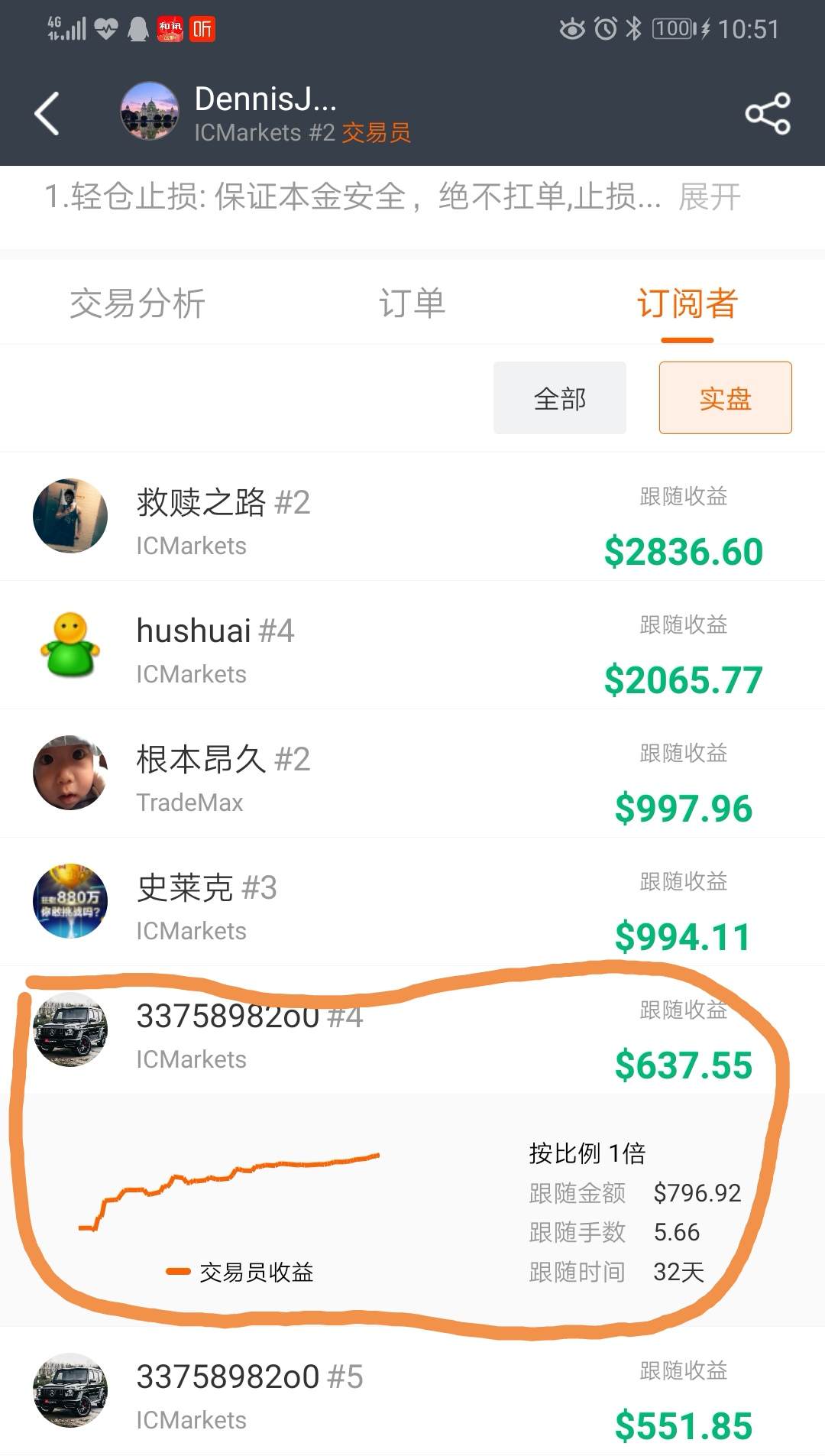 每个单子都有止损,包括你们没有看到止损数字的单子,请各位跟随朋友放心,最大止损位在100点加点差!