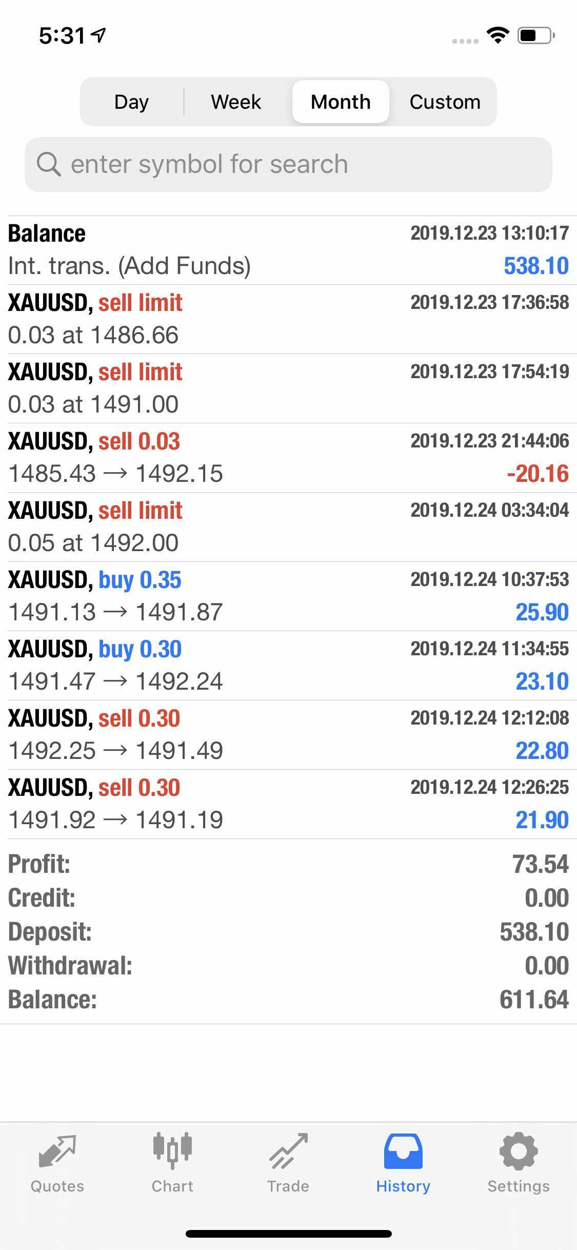XAU/USD 2019/12/16
