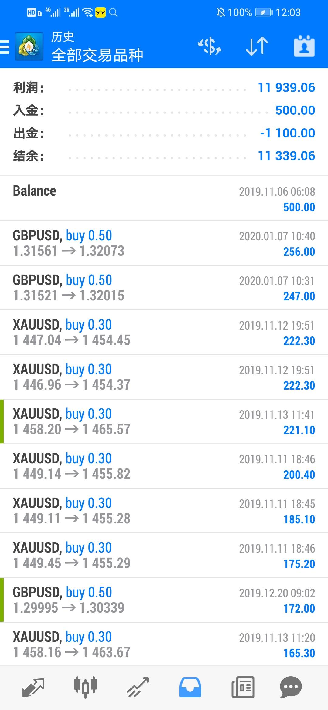 入金500美金,40个交易日盈利12000,翻仓24倍,严格止损止盈,不抗单,不马丁,有喜欢暴利的吗,想不想来跟随