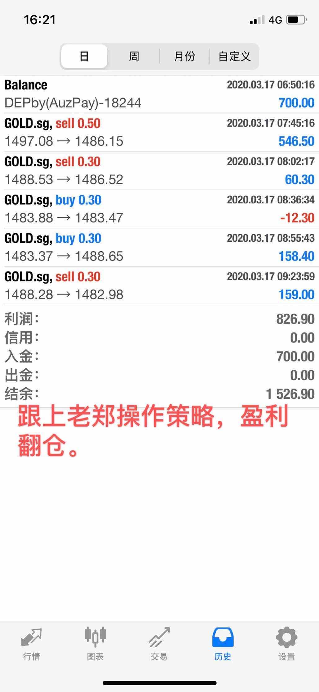 #黄金# 交给老郑操盘的,我老郑将会竭尽所能帮助你们完成来到这个市场的第一初衷,付出和回报成正比,我自己不能辜负你的期望,金融投资说简单,确实和喝水样,看行情走势掌控在谁的手上,收益的大小皆有不同 。#交易新手交流# #EUR/CAD# #晒单专区#