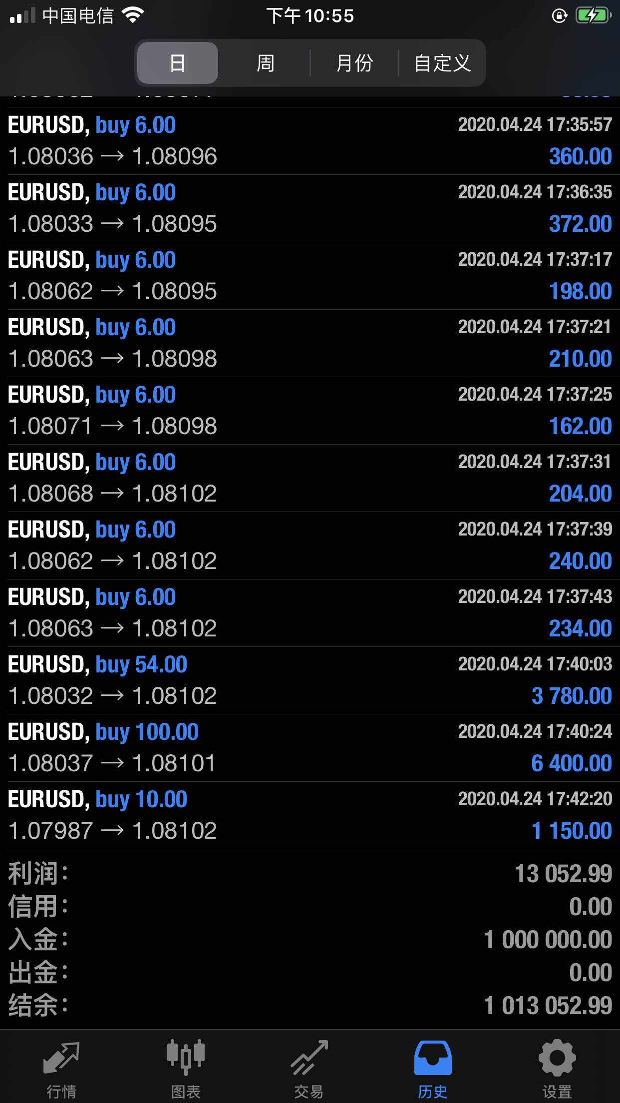 下图1 是昨日开单进场即获利的