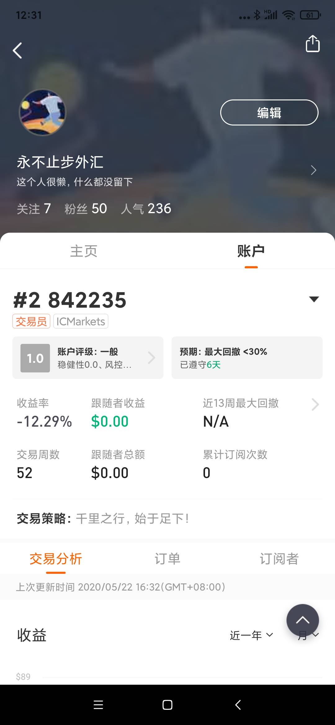 开了一年多的账户,一直处于平衡的状态,虽然没盈利,比起以前的亏损也算是进步了!期待早日实现突破!加油!