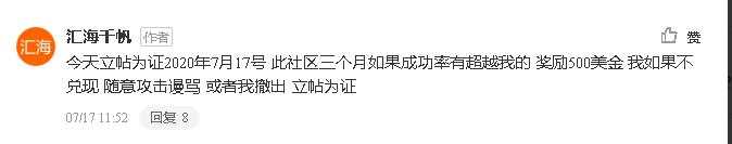 汇海大师傅你那500刀奖金什么时候到位啊?我都等好几天了,这么大个手子说话能算数吧!@汇海千帆