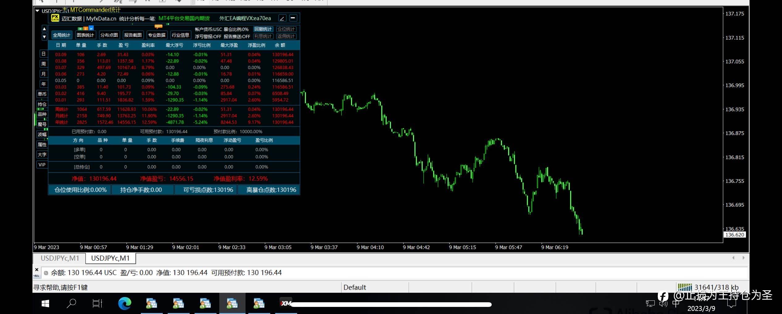 这个是近两月的0.01模式的交易记录,为什么每次挣钱那么吝啬而亏钱又那么慷慨?我不禁感叹,0.01仓位足够小,也有抓住400多点行情的时候。但是这种模式为啥最终也难赚钱呢?其实,行情不会每次按照我们所有计划走,如果出现大波段亏损的情况,我们是否能够很好的处理或者不加仓。这又涉及到情绪管理和策略管理。我们如果如果没有非常好的资金管理策略逆势马丁的确是难以存活的。做交易做到最后,最后都会落脚到净值回撤和盈亏比上。用胜率和盈亏比来累积盈利,对的时候拿稳,错的时候果断放弃亏损头寸找时机再次介入。