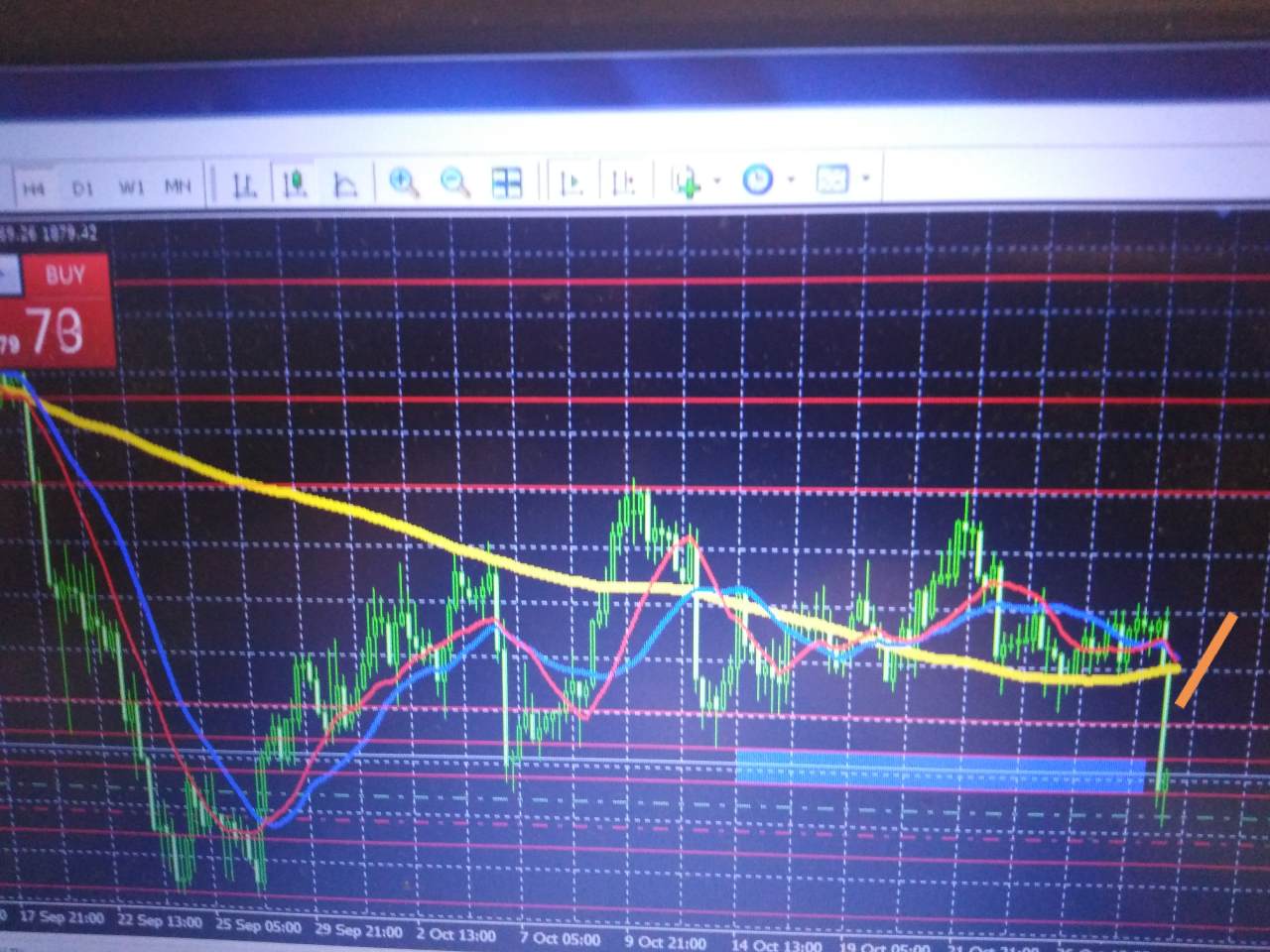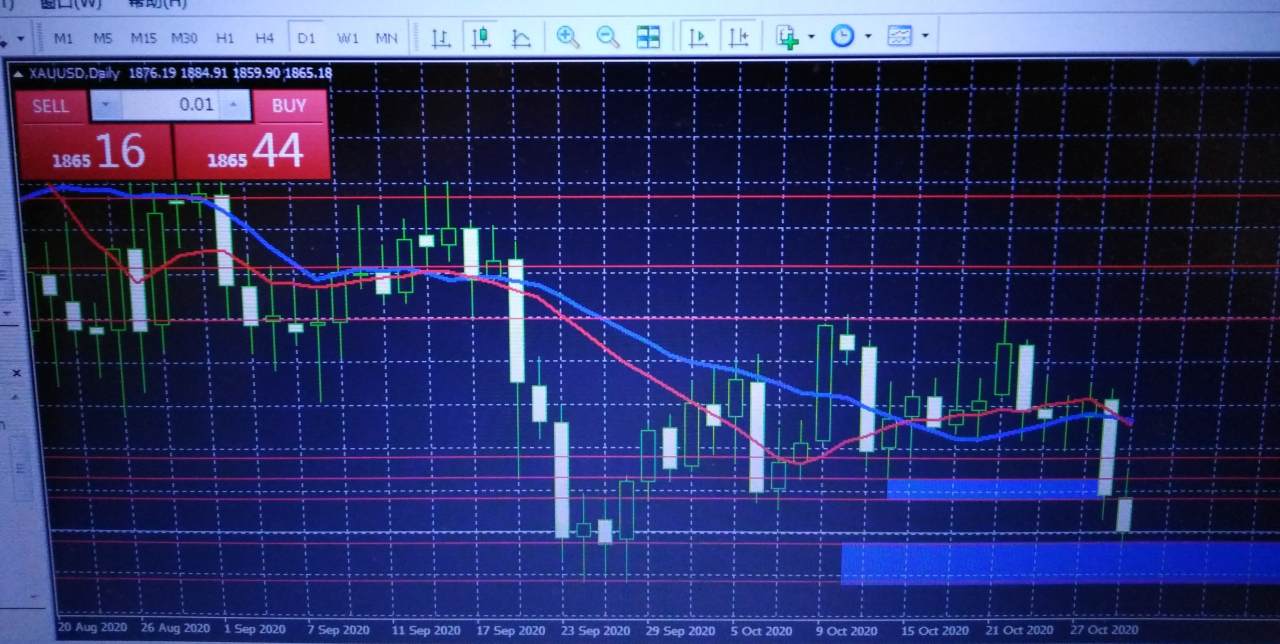 黄金空单止盈暂时出来,多单进了,但整体看空,所以目标价位要保守一些,暂时看到黄色箭头下边