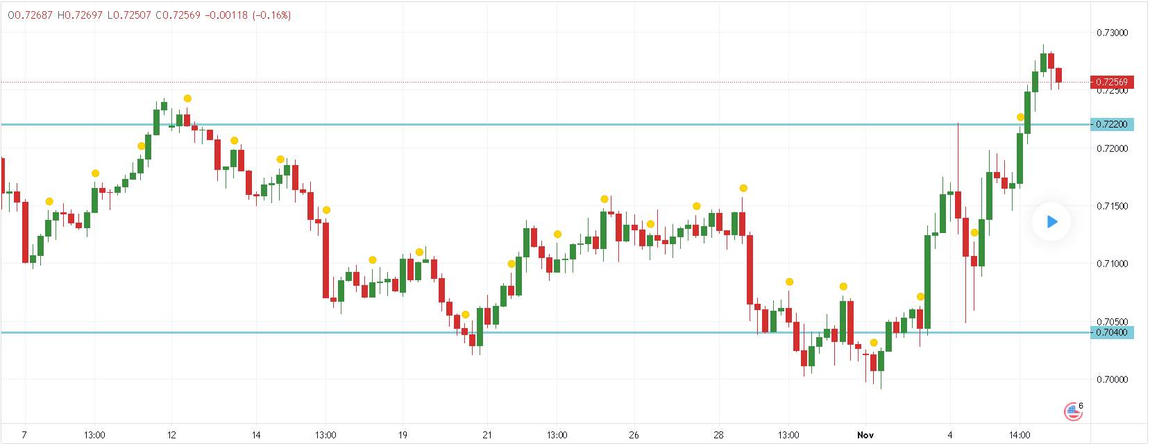 Hello guys, the pair AUD/USD moved upward and break the resistance zone of of 0.72200. AUD/USD next support zone is at 0.72200 and the next resistance zone is at 0.73900. Since the result of the U.S. Presidential Election is not yet finalized, look for short-term buying opportunities of AUD/USD. What do you guys think about it?🤔