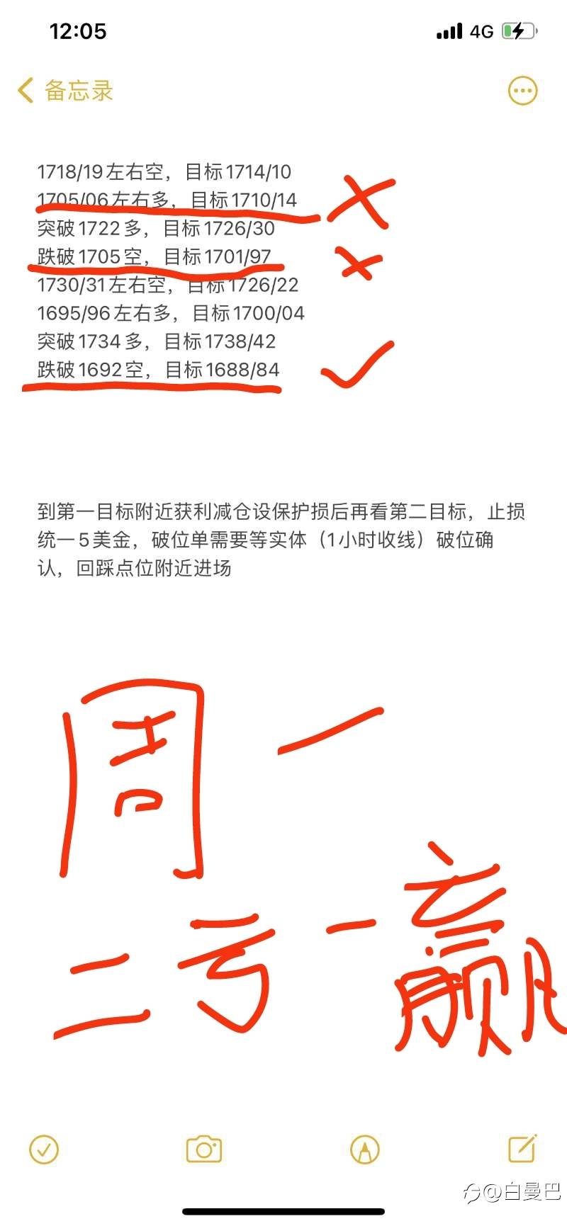 每一笔交易都该明确和谨慎,清楚的知道自己选择方向的理由,入场的理由,有效止损的位置,加仓减仓的位置,否则就会被别人所影响,就会扰乱自己的计划,最终实现亏损