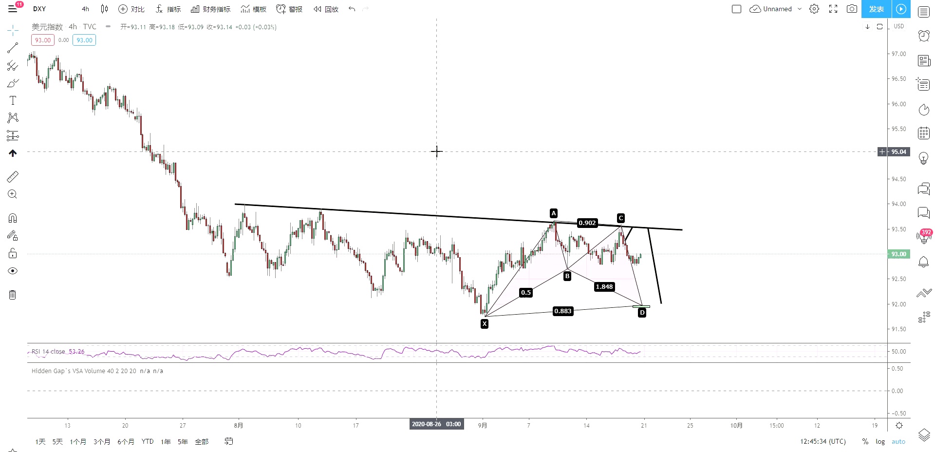 #和谐交易法# 美元下周继续上涨,目标蝴蝶形态