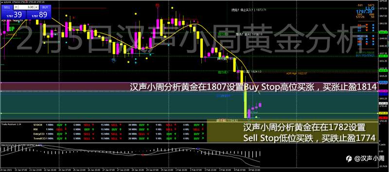 【汉声小周】0205黄金:昨天因为美国初请失业金数据表现良好,美元与美债收益率走强,美元创两个月新高,华尔街三大股指集体上涨,市场对美国未来的经济前景相当看好,削弱黄金的涨幅导致暴跌;
