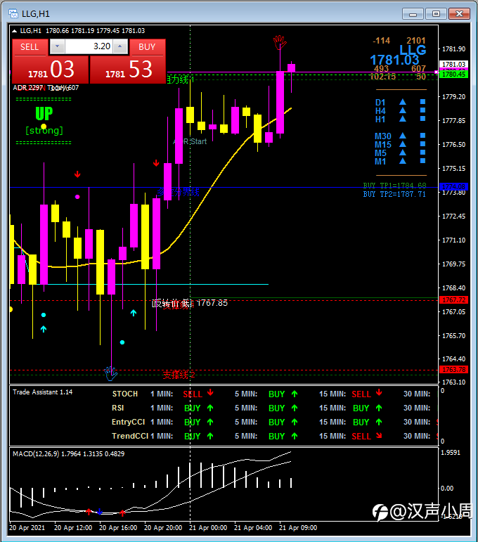 【2】在1782设置Sell Stop低位买跌,买跌止盈1774;