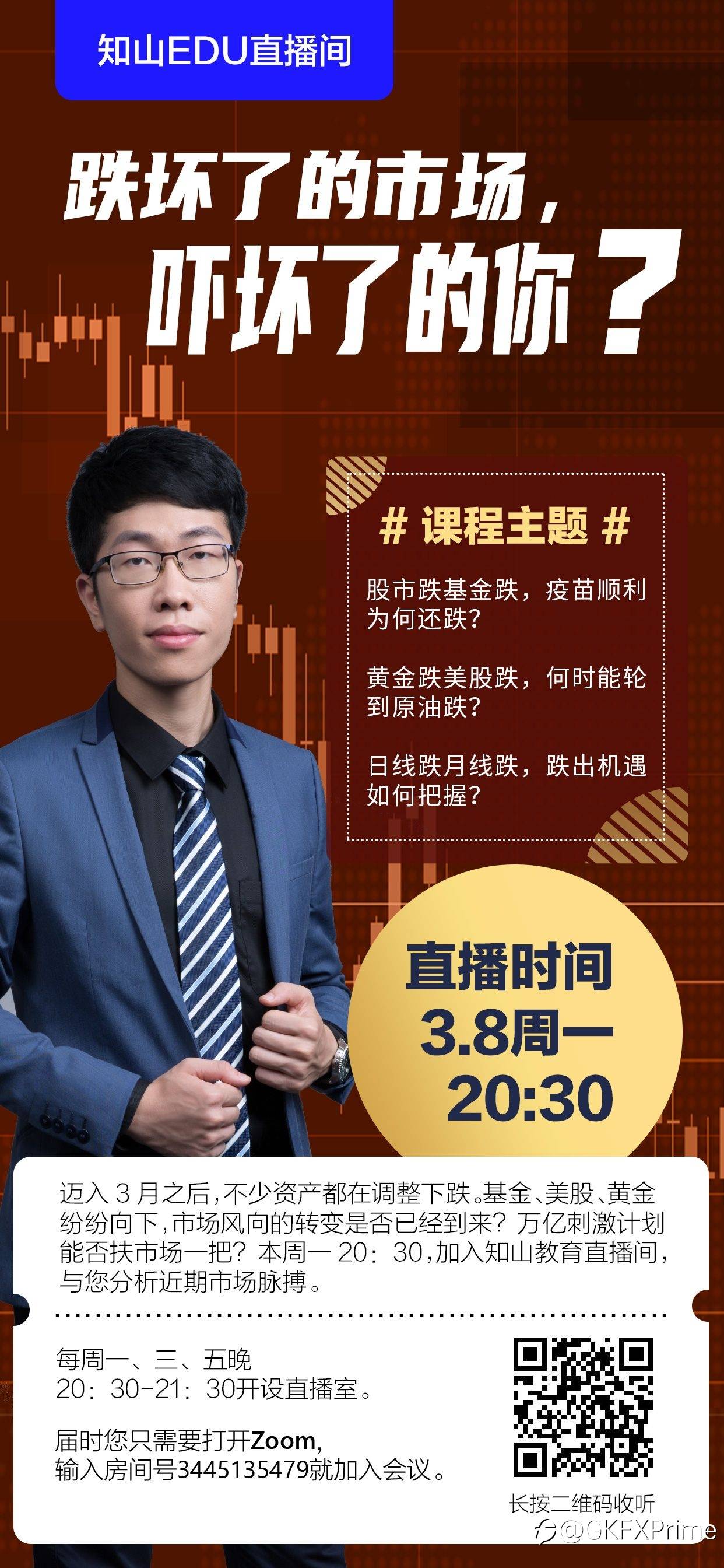 迈入3月之后,不少资产都在调整下跌。基金、美股、黄金纷纷向下,市场风向的转变是否已经到来?万亿刺激计划能否扶市场一把?今晚20:30分,zoom房间号3445135479,#GKFX捷凯# 讲师jack老师与您分析近期市场脉搏。#交易商资讯#