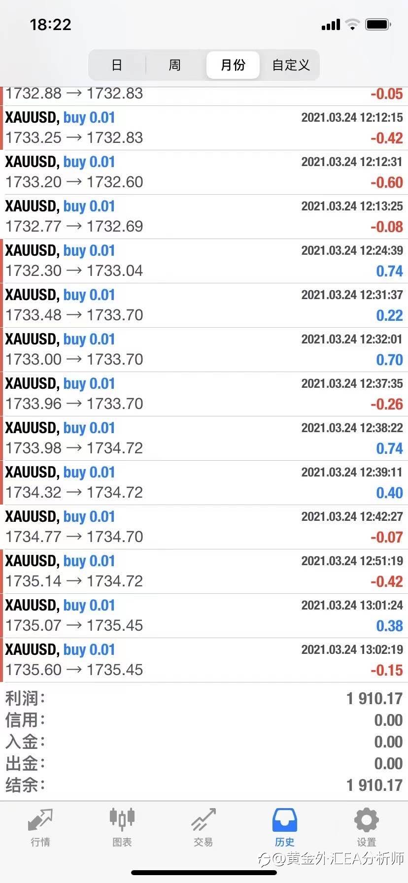 #XAU/USD# 当月EA收益