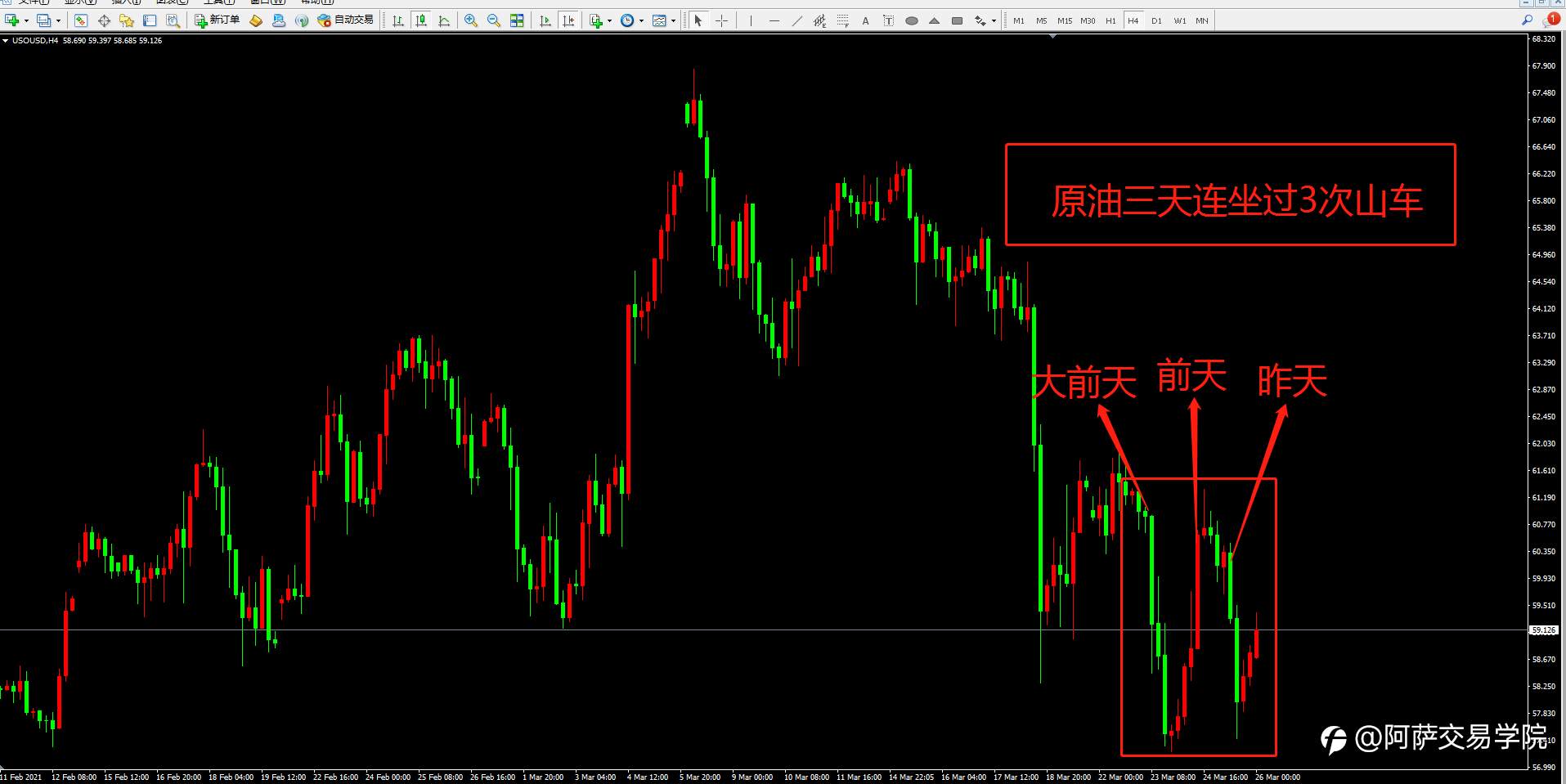 从货轮被堵消息一出原油暴涨,一日游之后昨晚又暴跌,这三天原油一上一下坐了三次过山车。我想这几天在做原油品种,还能安稳待在车上的人应该没几个吧。原油说真的,目前做做短线就好,因为消息太多,风向变转太快。还是抓住短期利润比较舒服