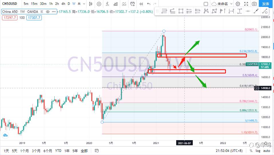 #CHINA-A50# a50周线级别382附近收出PINBAR,关注企稳后的做多机会,目标18000