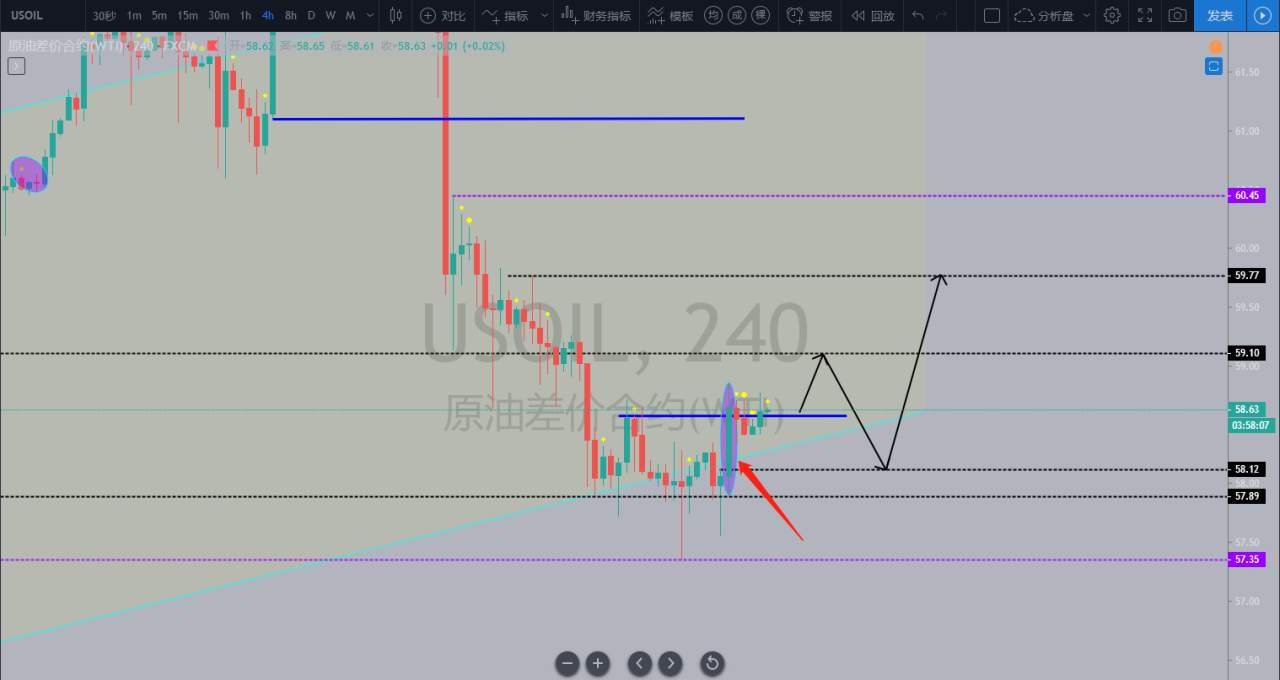 #WTI.F#等待回头测试,上不去,依旧看空,下方59。